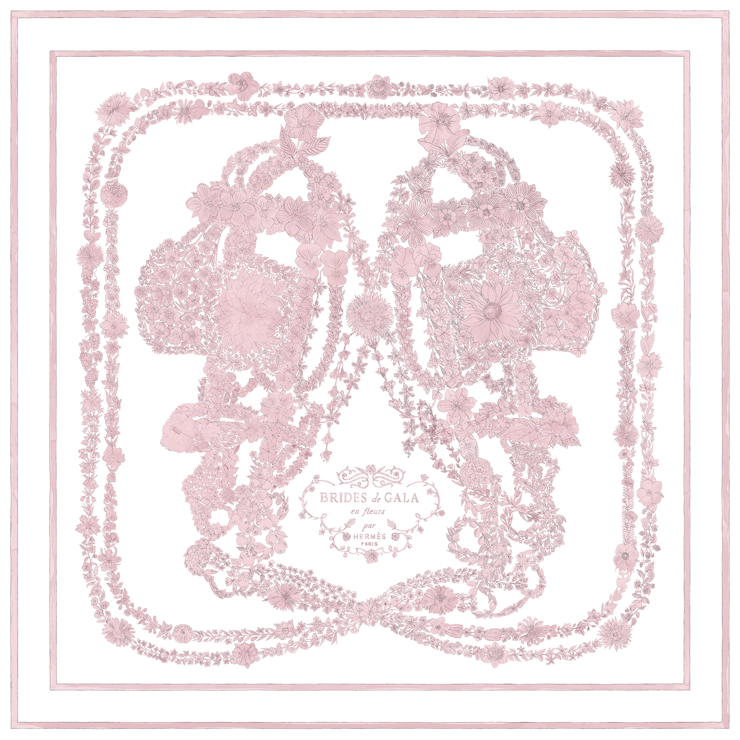 Watercolour treatment of the « Brides de Gala en fleurs » scarf by Christine Henry for Women’s Ready-to-Wear, SS25 collection