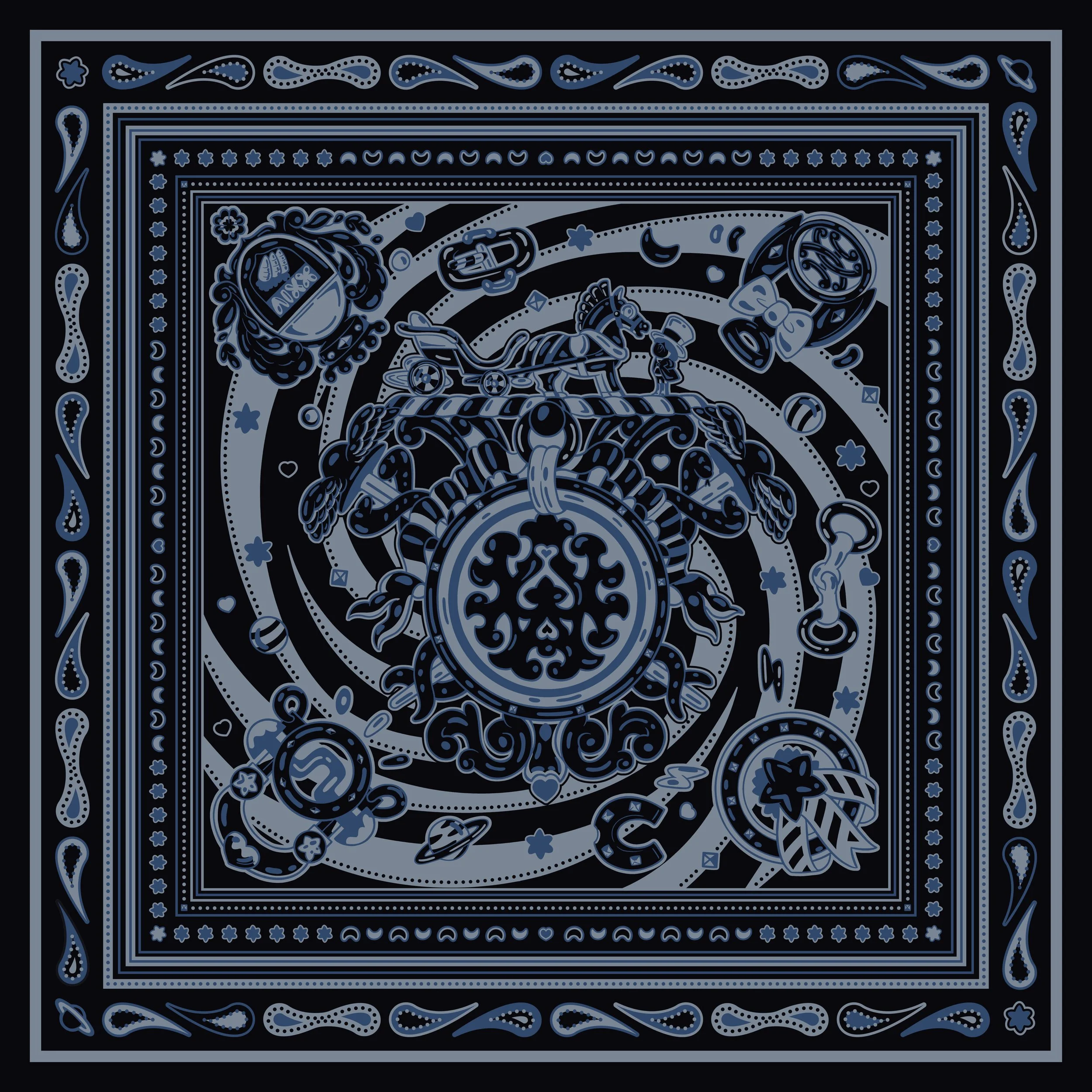Hermès Adaptation of « Candy Libris » by Daiske Nomura in a Bandana style, silk, 90 x 90 cm, Autumn-Winter 2025 collection