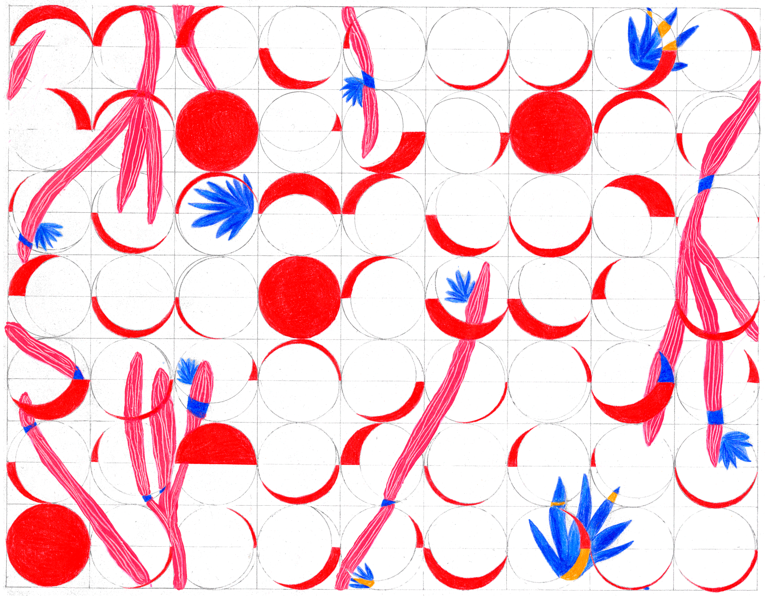 Le cycle lunaire et la métamorphose végétale sont des notions qui me permettent de déployer un travail de recherches graphiques et colorimétriques.