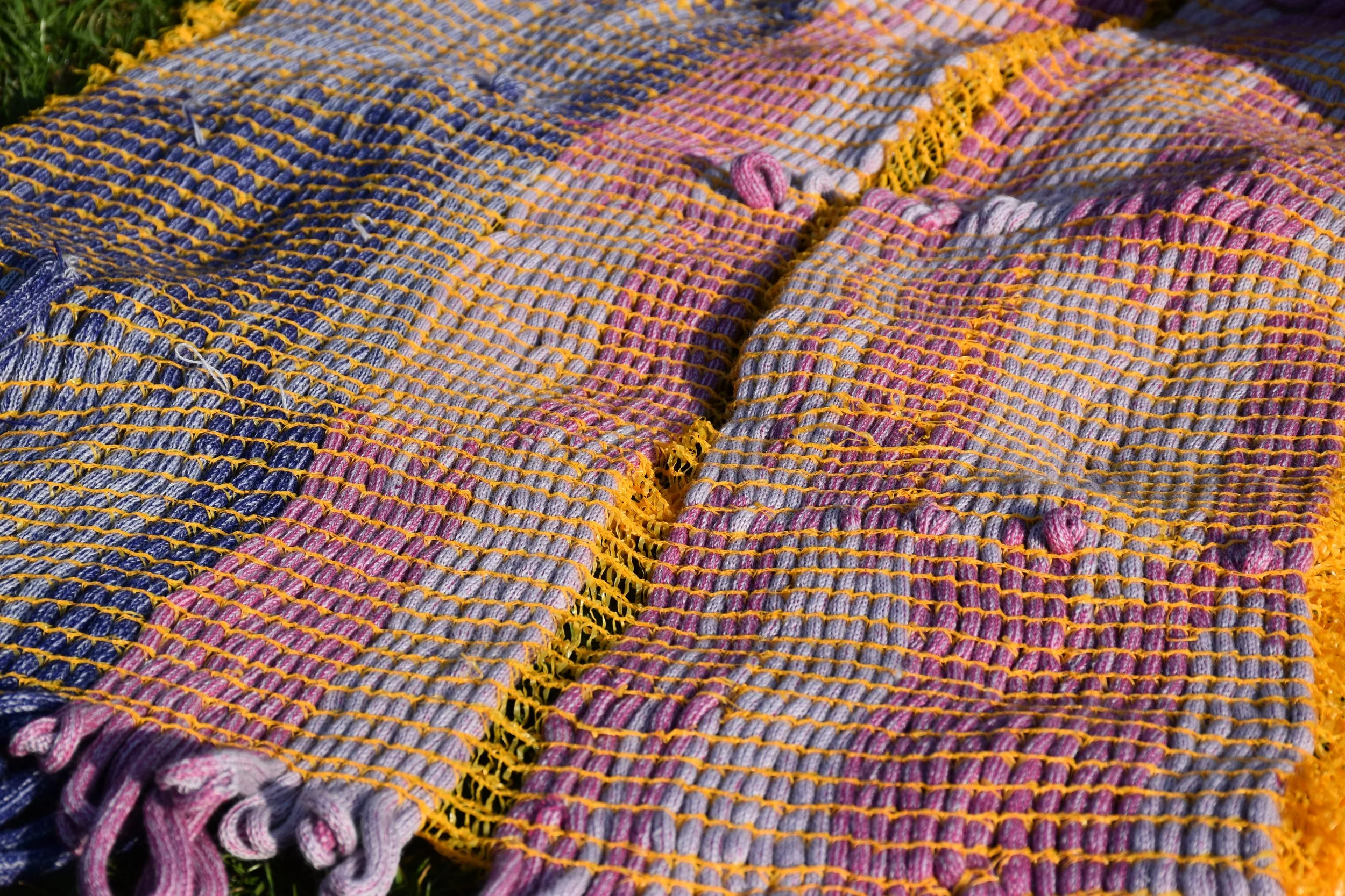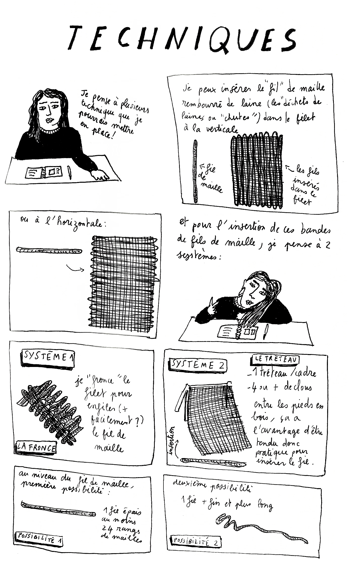 Le sac de pommes de terre envisagé comme une grille, une structure, un agencement de fils oranges entrecroisés.